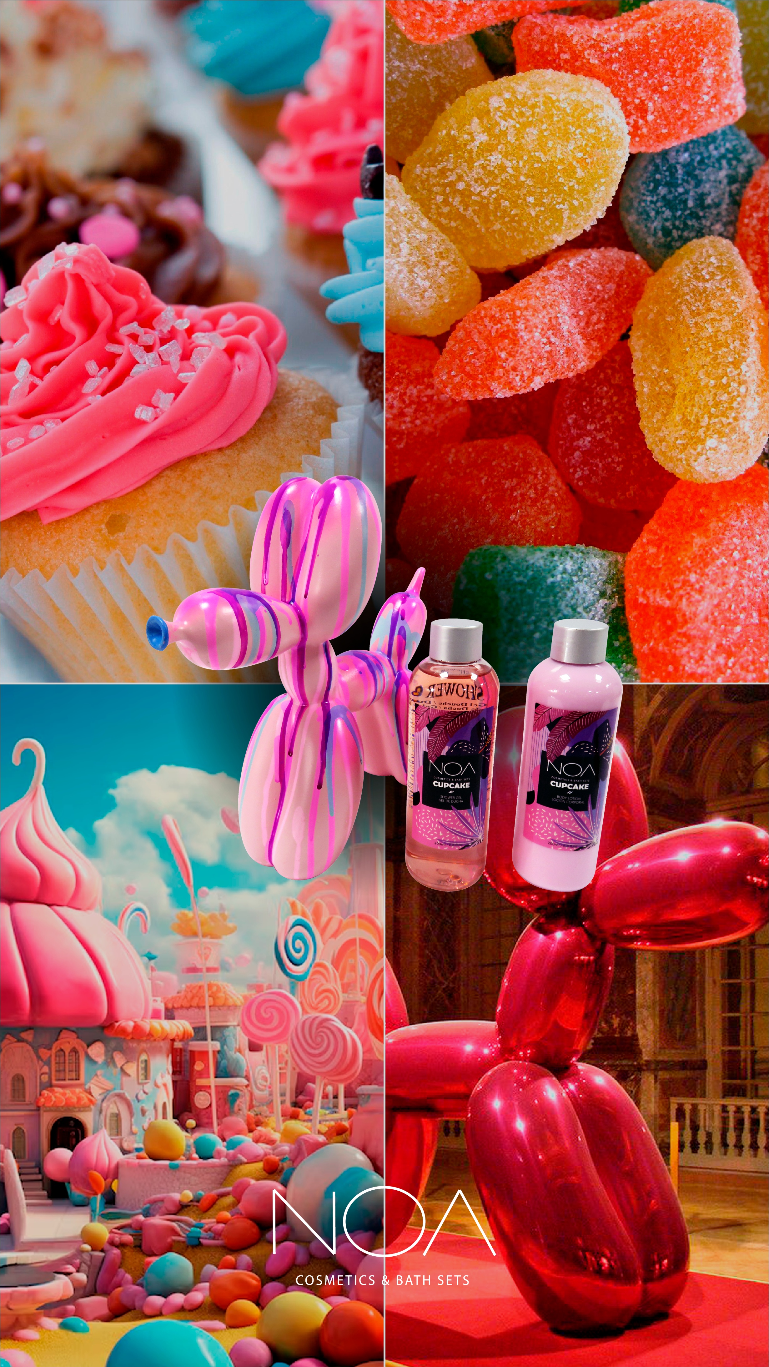 480 UDS - VIRAL BALLOON DOG BATH SETS PINK/BLACK - NOA COSMETICS & BATH SETS